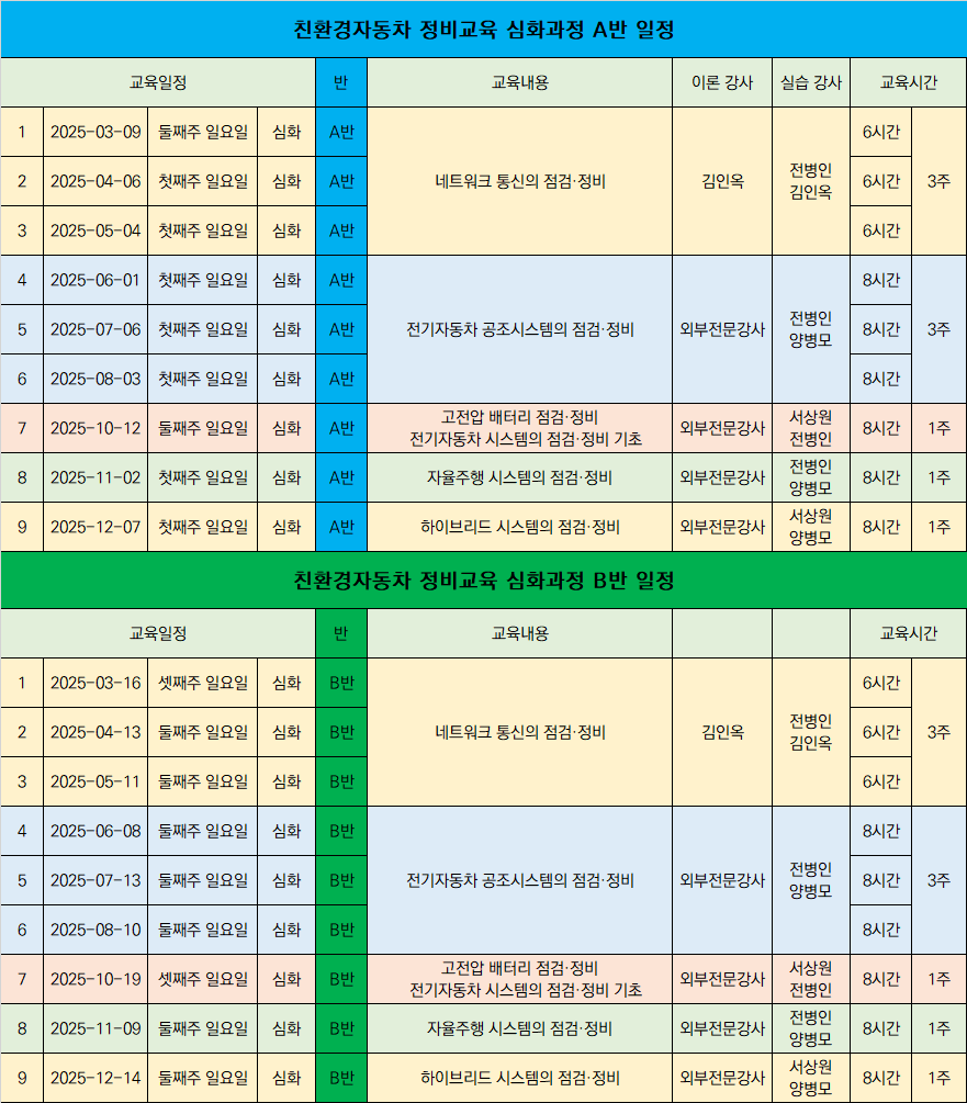 현재 A반, B반 반 배정 및 일정 안내드립니다.