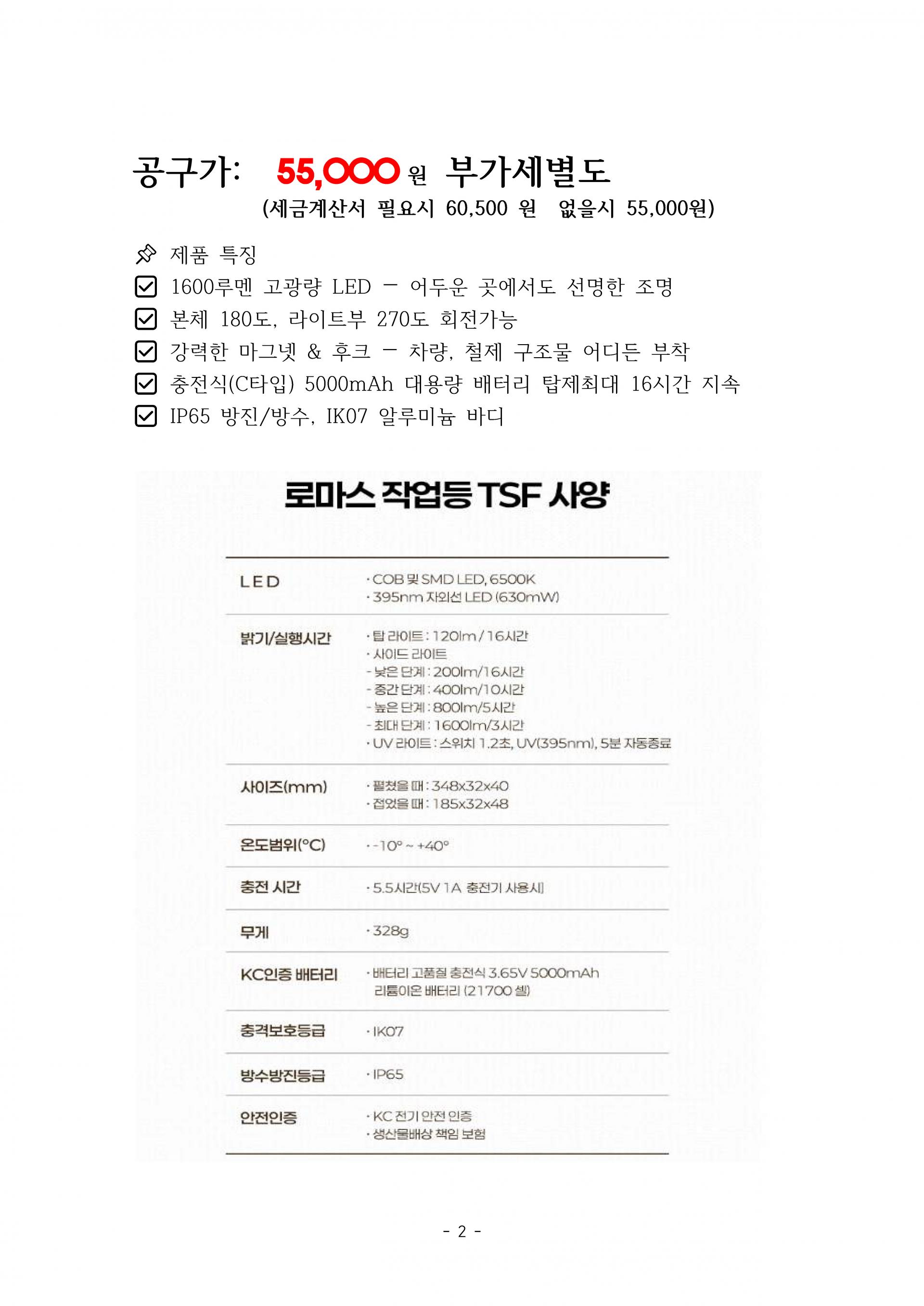 3⃣ 로마스 공동구매 / 작업등 RT-L1600 / 공동구매가 55,000 (vat 별도금액)